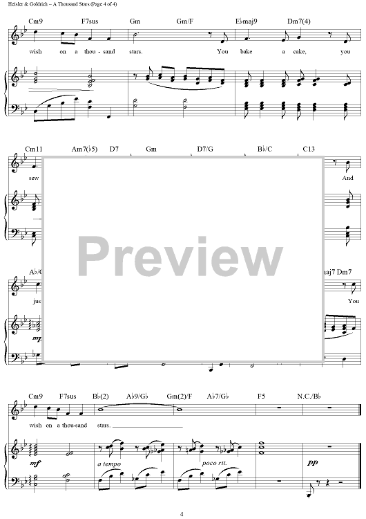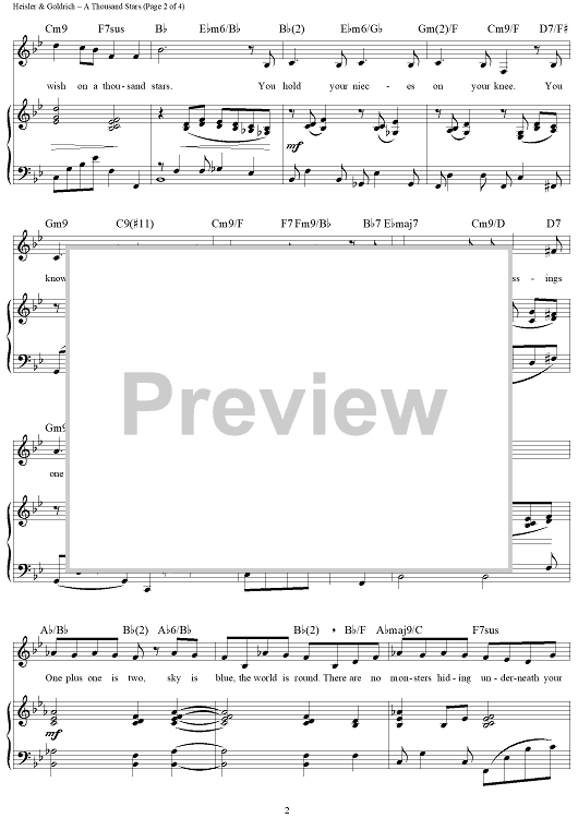Digital Sheet Music for A Thousand Stars by Goldrich & Heisler scored for Piano/Vocal/Chords; id:456445