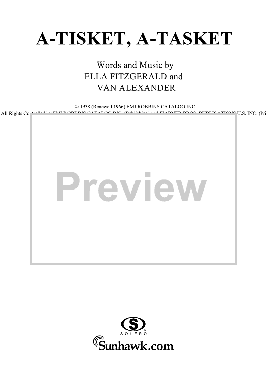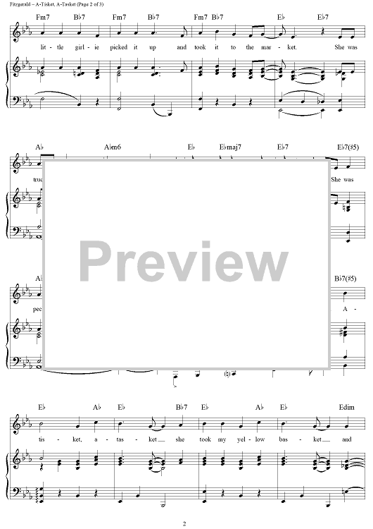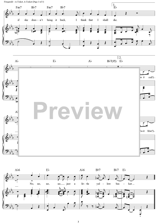 Digital Sheet Music for A-Tisket, A-Tasket by Ella Fitzgerald, Van Alexander scored for Piano/Vocal/Chords; id:119799