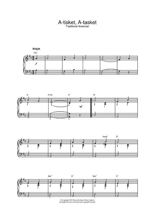 Digital Sheet Music for A-tisket, A-tasket by scored for Piano; id:375767