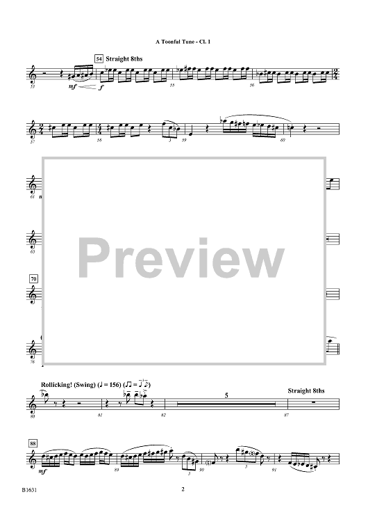 "A Toonful Tune - Bb Clarinet 1" Sheet Music by Rick DeJonge