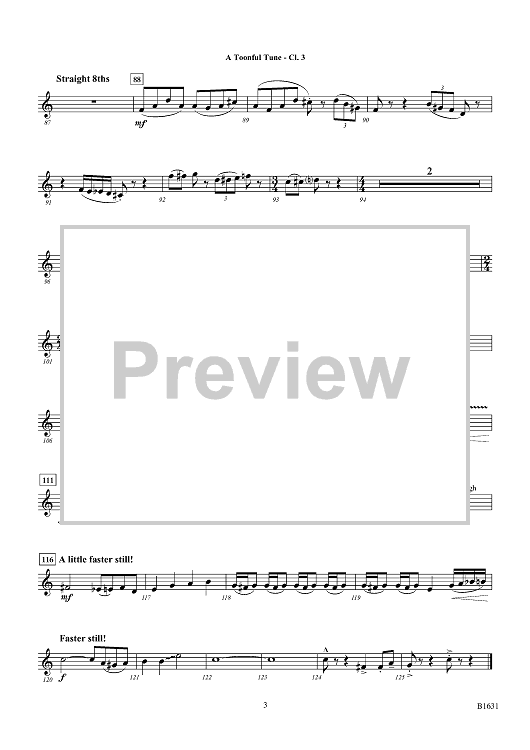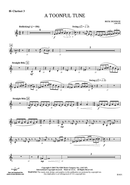 "A Toonful Tune - Bb Clarinet 3" Sheet Music by Rick DeJonge