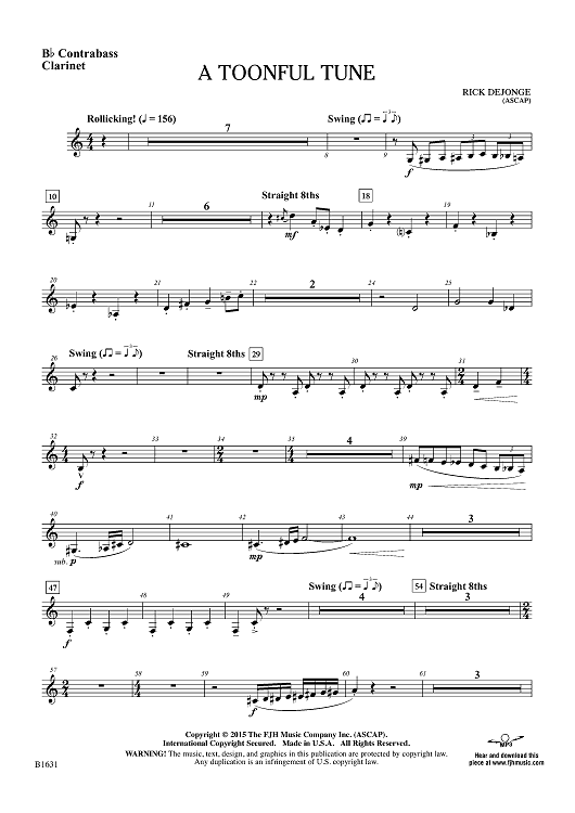 Digital Sheet Music for A Toonful Tune - Bb Contrabass Clarinet by Rick DeJonge scored for Concert Band; id:454894