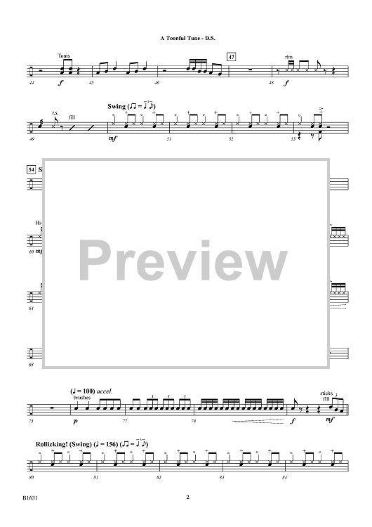Digital Sheet Music for A Toonful Tune - Drum Set by Rick DeJonge scored for Concert Band; id:454916