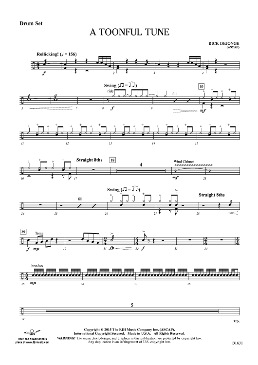 "A Toonful Tune - Drum Set" Sheet Music by Rick DeJonge