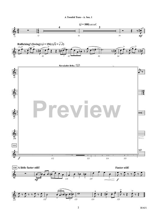 "A Toonful Tune - Eb Alto Sax 1" Sheet Music by Rick DeJonge