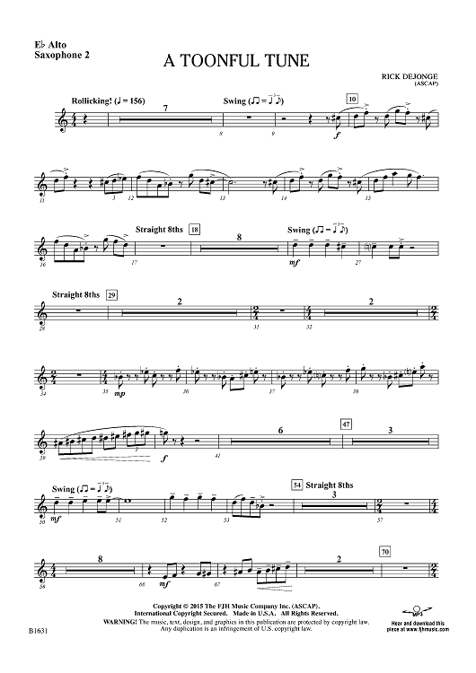 "A Toonful Tune - Eb Alto Sax 2" Sheet Music by Rick DeJonge