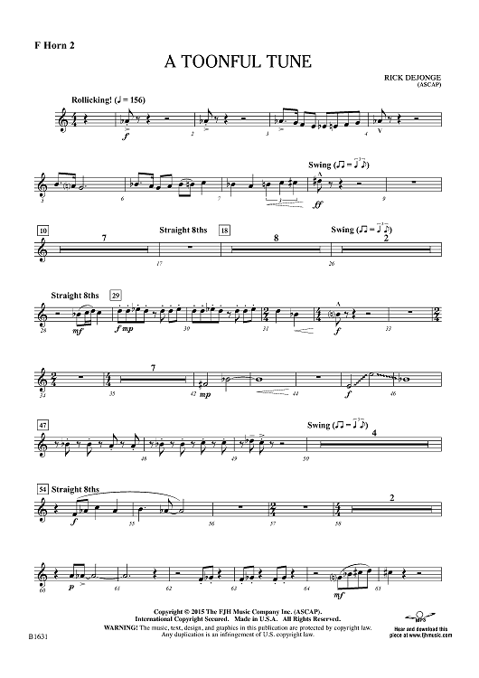 "A Toonful Tune - F Horn 2" Sheet Music by Rick DeJonge
