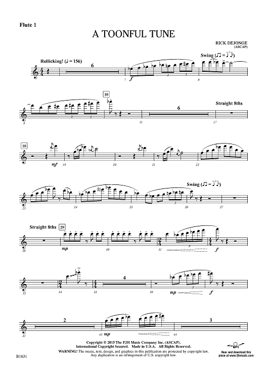 "A Toonful Tune - Flute 1" Sheet Music by Rick DeJonge