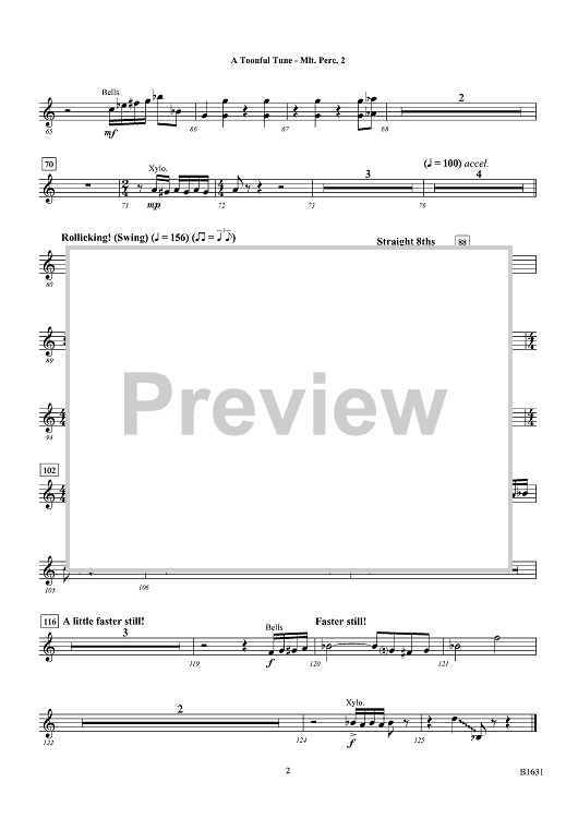 Digital Sheet Music for A Toonful Tune - Mallet Percussion 2 by Rick DeJonge scored for Concert Band; id:454915