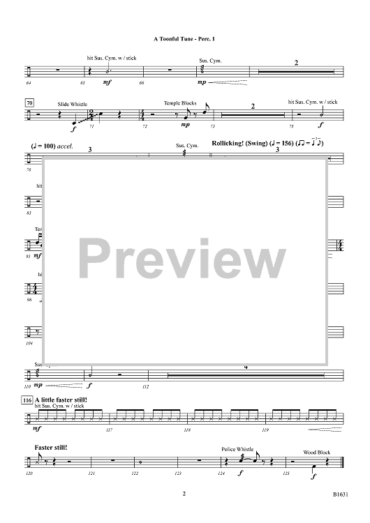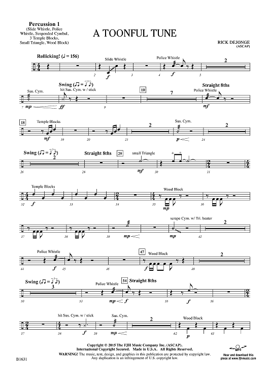 "A Toonful Tune - Percussion 1" Sheet Music by Rick DeJonge