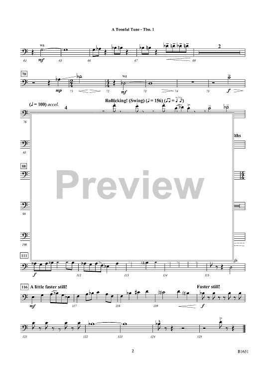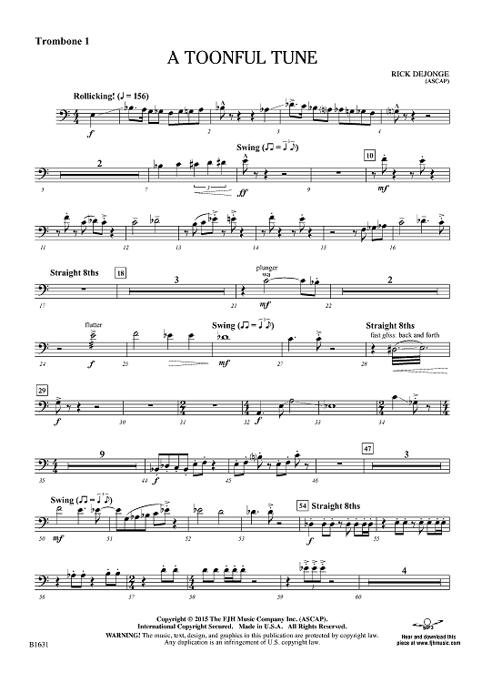 "A Toonful Tune - Trombone 1" Sheet Music by Rick DeJonge