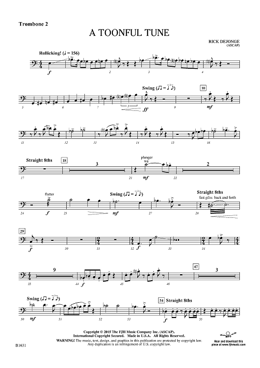 "A Toonful Tune - Trombone 2" Sheet Music by Rick DeJonge