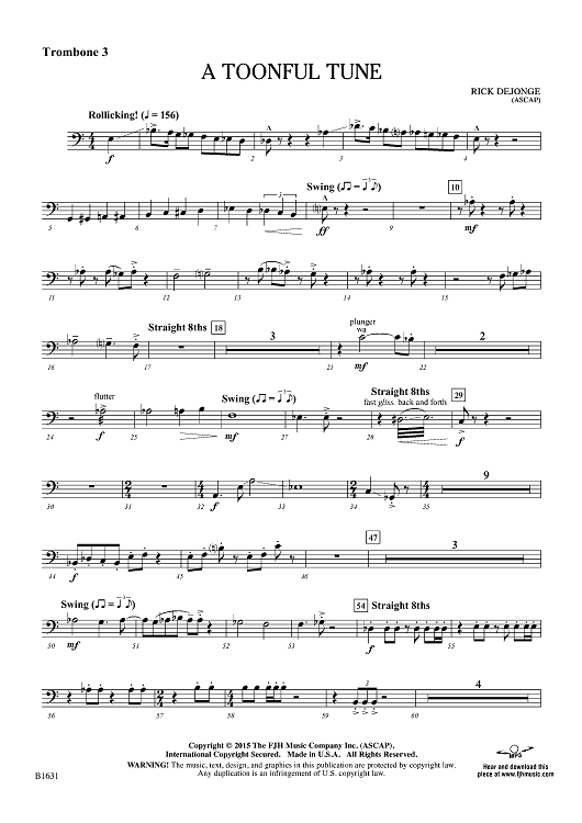 "A Toonful Tune - Trombone 3" Sheet Music by Rick DeJonge