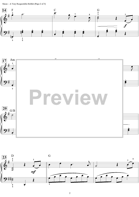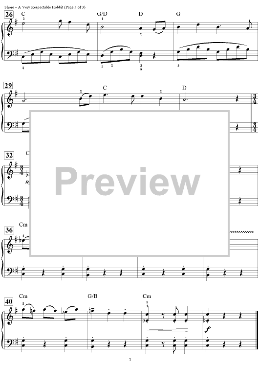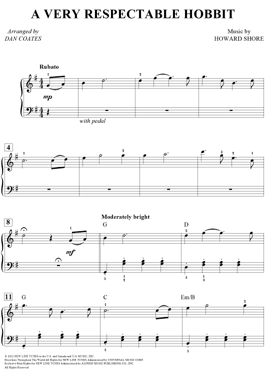 Digital Sheet Music for A Very Respectable Hobbit by Dan Coates, Howard Shore scored for Easy Piano/Chords; id:440100