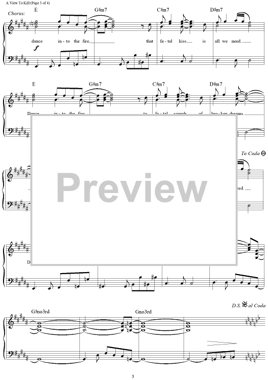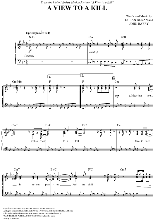 Digital Sheet Music for A View To A Kill by John Barry, Duran Duran scored for Piano/Vocal/Chords; id:109911