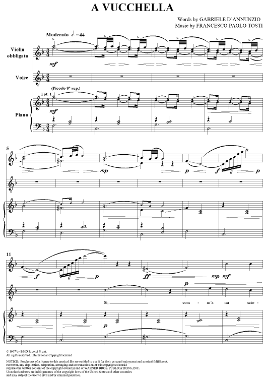 Digital Sheet Music for 'A Vucchella by Andrea Bocelli, Gabriele d'Annunzio, Francesco Paolo Tosti scored for Piano/Vocal/Violin; id:296228
