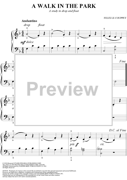 "A Walk in the Park" Sheet Music by Felix Le Couppey
