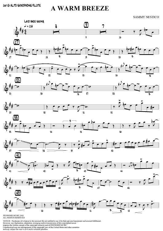 "A Warm Breeze - Alto Saxophone 1" Sheet Music by Sammy Nestico