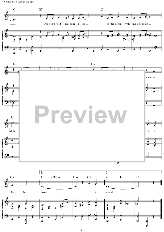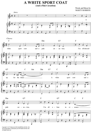 Digital Sheet Music for A White Sport Coat (And a Pink Carnation) by Marty Robbins scored for Piano/Vocal/Chords; id:255739