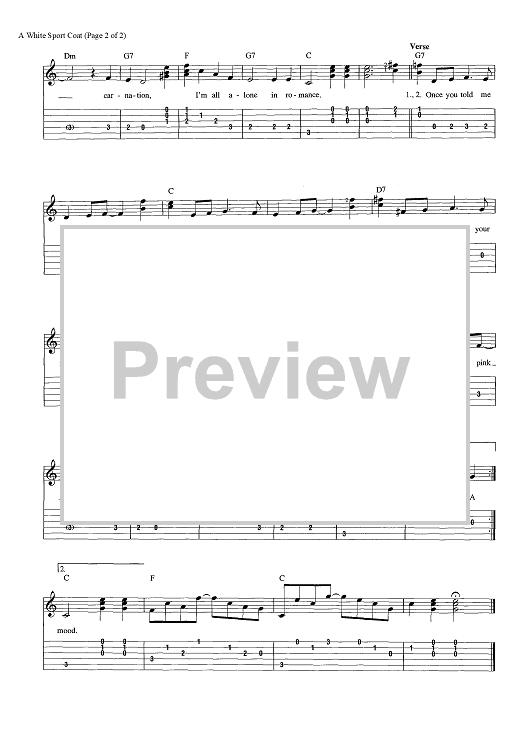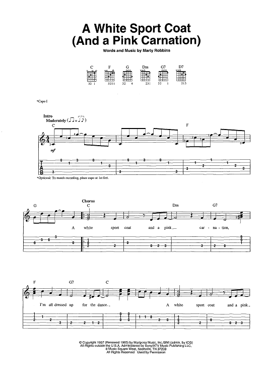 Digital Sheet Music for A White Sport Coat (And a Pink Carnation) by Marty Robbins scored for Easy Guitar Tab/Vocal/Chords; id:456824