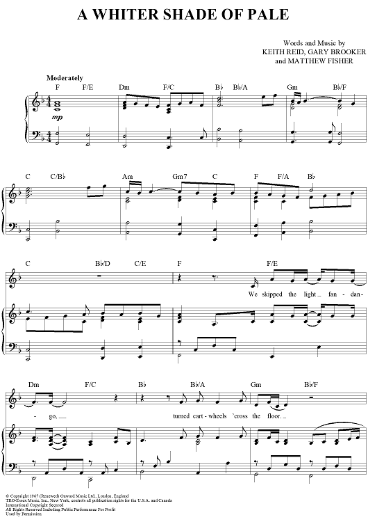 Digital Sheet Music for A Whiter Shade Of Pale by Annie Lennox, Keith Reid, Gary Brooker, Procol Harum, Sarah Brightman, Matthew Fisher scored for Piano/Vocal/Chords; id:369641