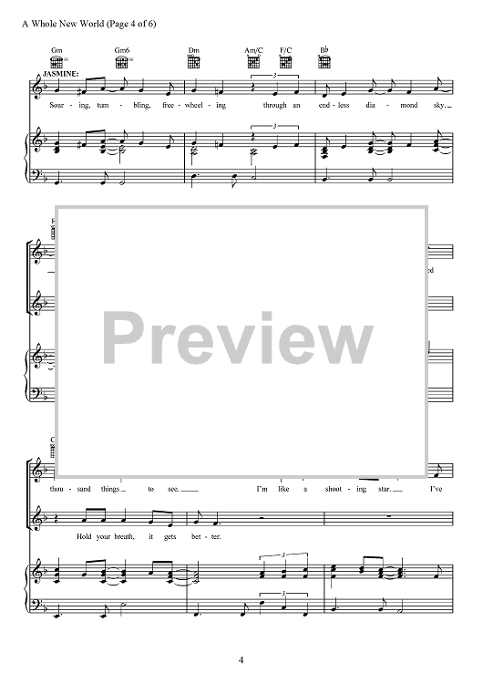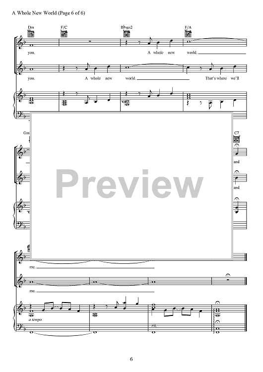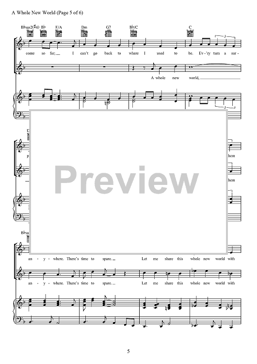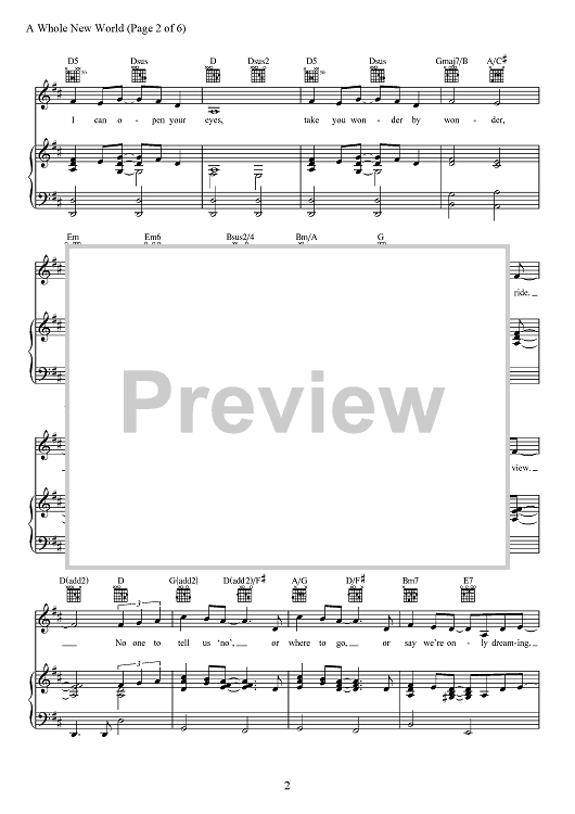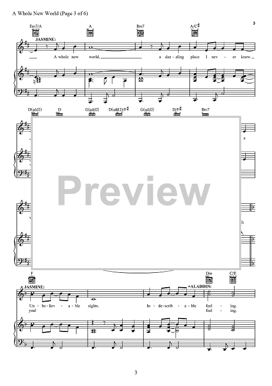 Digital Sheet Music for A Whole New World - from Disney's Aladdin (2019) by Tim Rice, Alan Menken scored for Piano/Vocal/Chords; id:467690