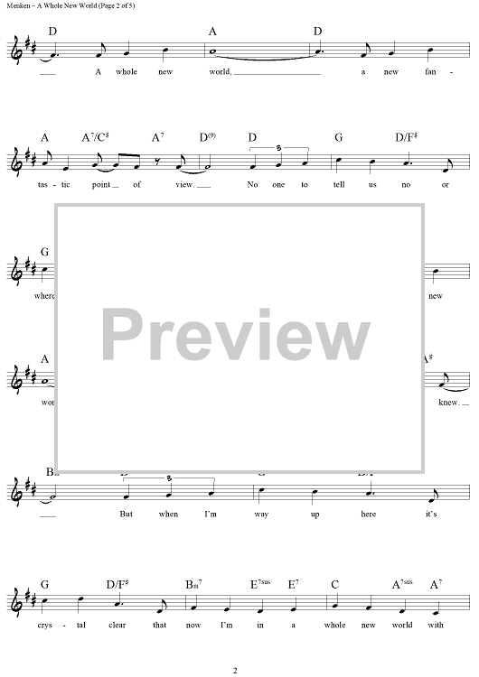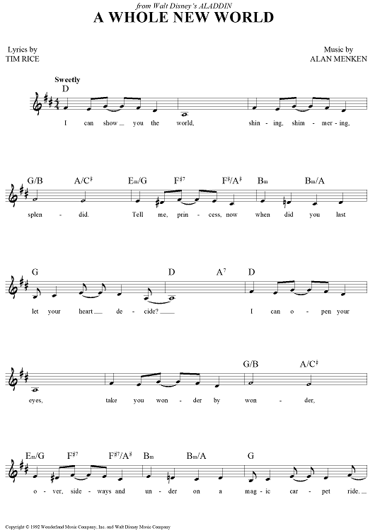 Digital Sheet Music for A Whole New World by Tim Rice, Alan Menken scored for Lead Sheet; id:448603