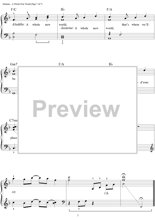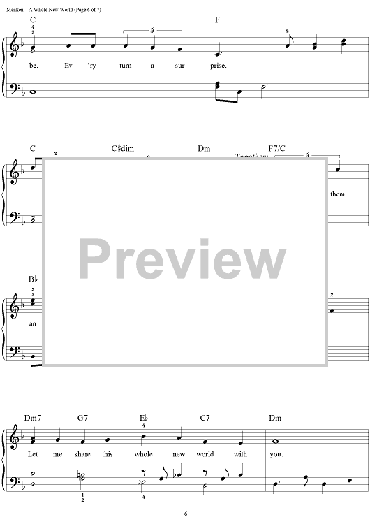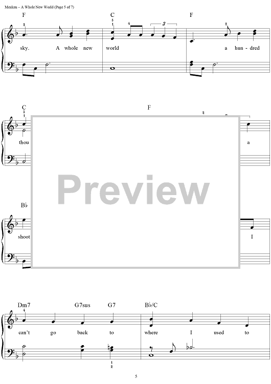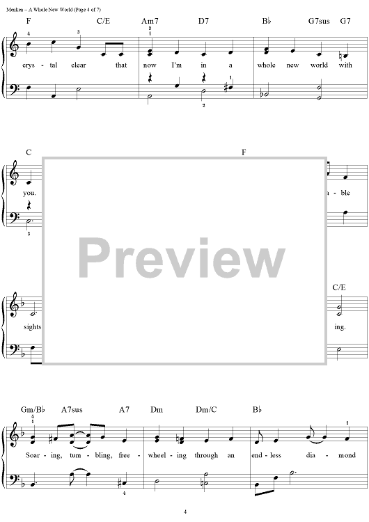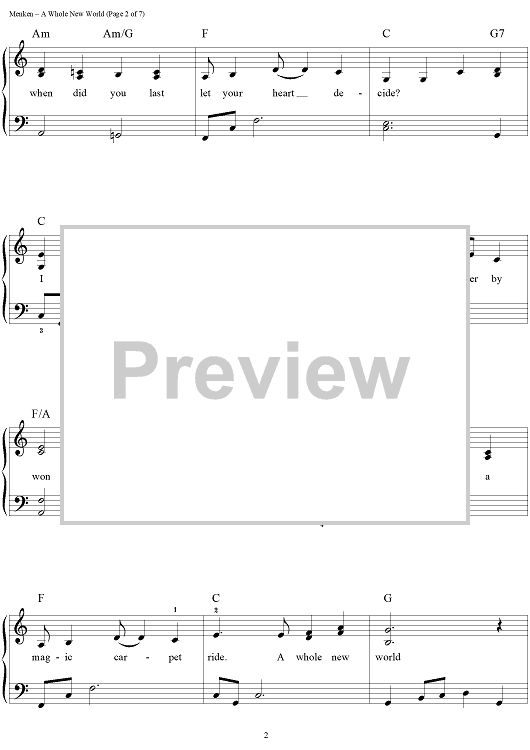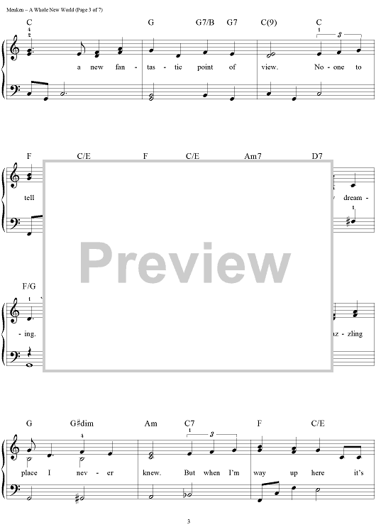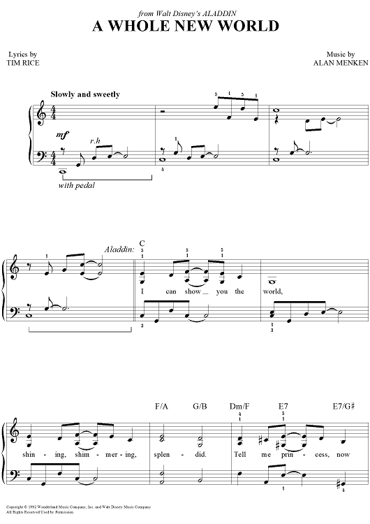 Digital Sheet Music for A Whole New World by Tim Rice, Alan Menken scored for Easy Piano/Vocal/Chords; id:453214