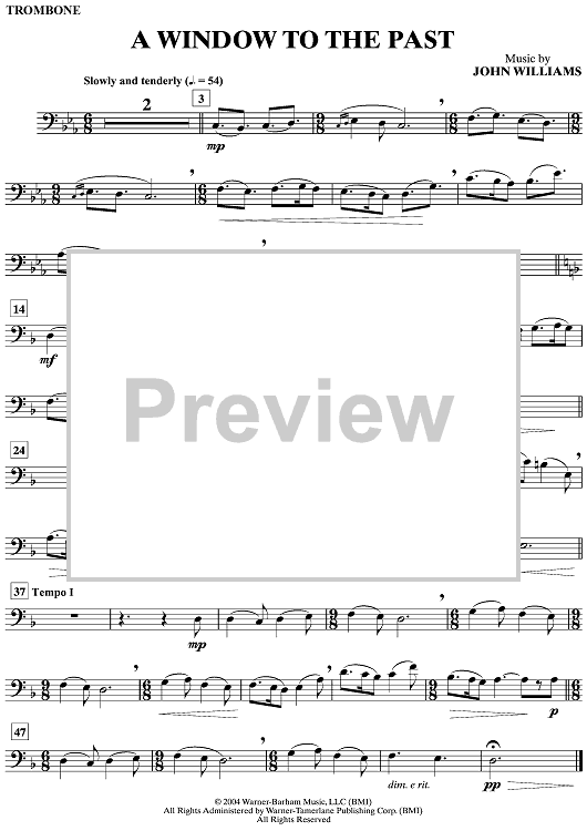 Digital Sheet Music for A Window to the Past by John Williams scored for Trombone/Piano; id:498143
