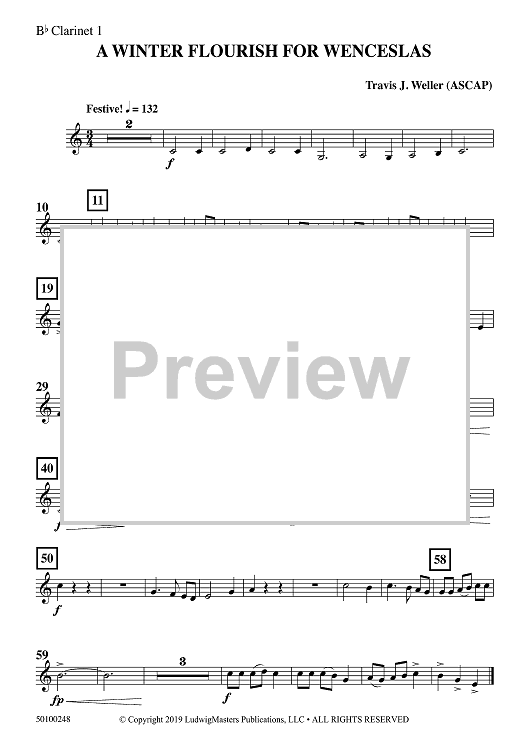 Digital Sheet Music for A Winter Flourish for Wenceslas - Bb Clarinet 1 by Travis J. Weller scored for Concert Band; id:502143
