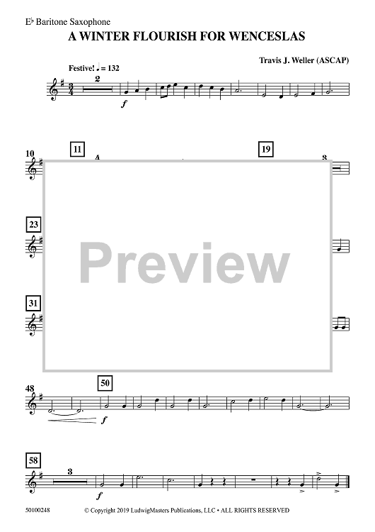 Digital Sheet Music for A Winter Flourish for Wenceslas - Eb Baritone Sax by Travis J. Weller scored for Concert Band; id:502148
