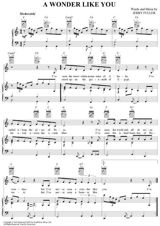 Digital Sheet Music for A Wonder Like You by Ricky Nelson, Jerry Fuller scored for Piano/Vocal/Chords; id:367301