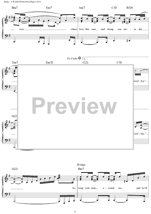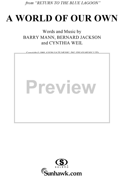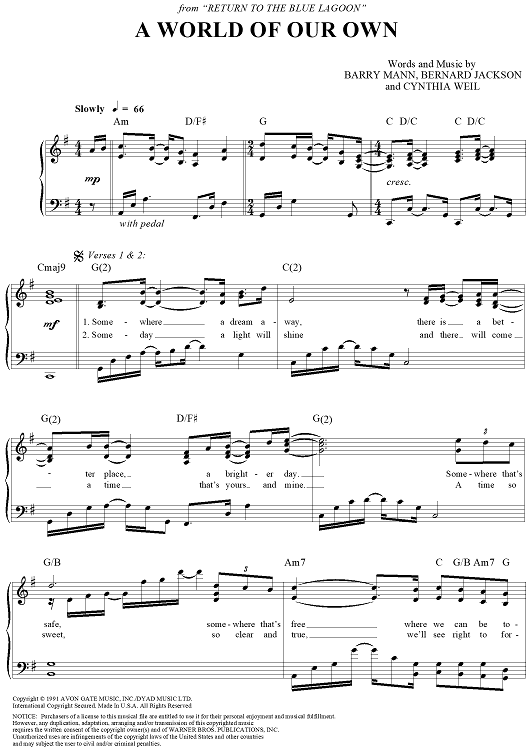 Digital Sheet Music for A World of Our Own by Barry Mann, Bernard Jackson, Cynthia Weil scored for Piano/Vocal/Chords; id:120699