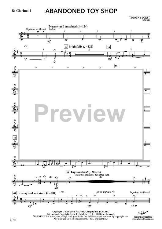 Digital Sheet Music for Abandoned Toy Shop - Bb Clarinet 1 by Timothy Loest scored for Concert Band; id:500138