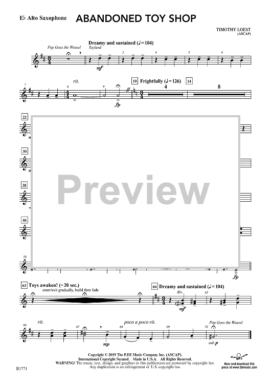 Digital Sheet Music for Abandoned Toy Shop - Eb Alto Sax by Timothy Loest scored for Concert Band; id:500141