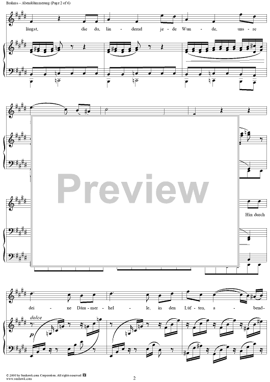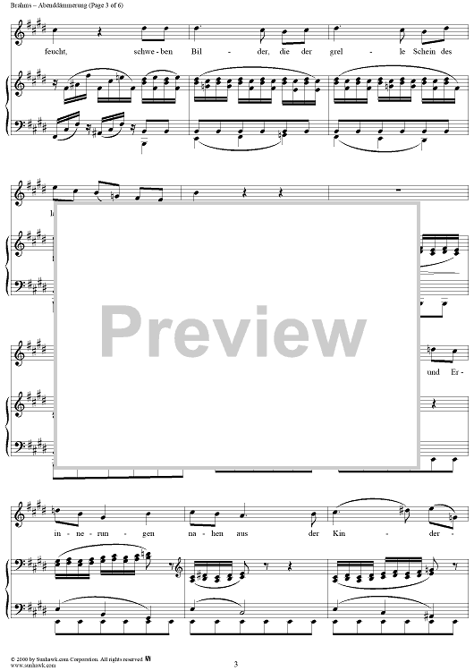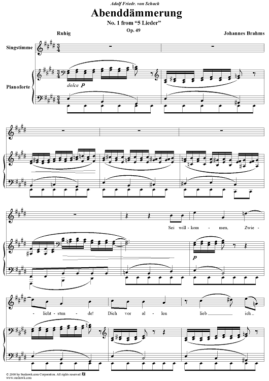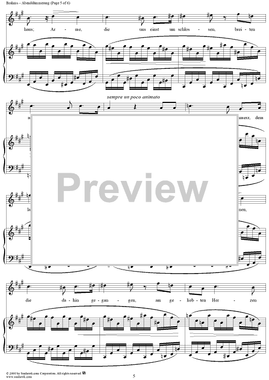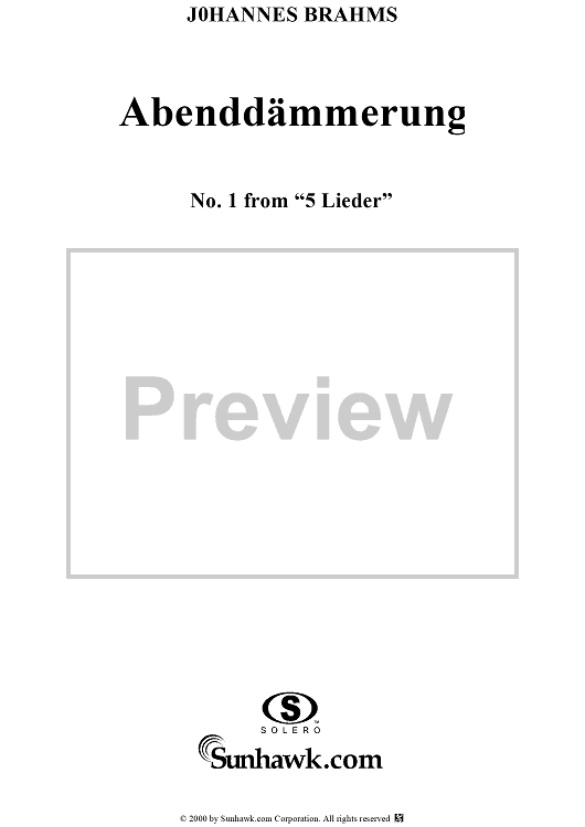 Digital Sheet Music for Abenddämmerung - No. 5 from "5 Lieder" - Op. 49 by Johannes Brahms scored for Voice/Piano; id:274975