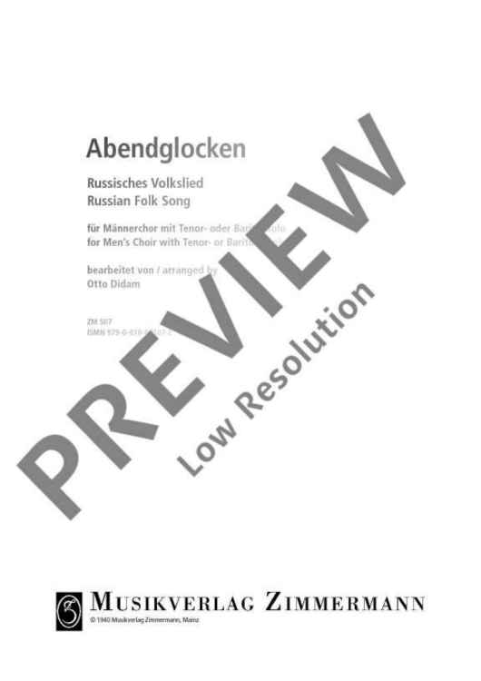 Digital Sheet Music for Abendglocken by Otto Didam scored for Men's Choir With Tenor- Or Baritone-solo; id:492192
