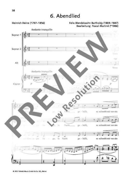 Digital Sheet Music for Abendlied by Felix Mendelssohn Bartholdy, Pascal Martiné scored for Female Choir (ssa) And Piano; id:492039