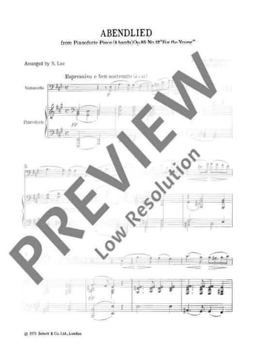 Digital Sheet Music for Abendlied by Robert Schumann scored for Cello And Piano; id:492588