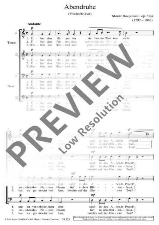 "Abendruhe in C major - Choral Score" Sheet Music by Moritz Hauptmann