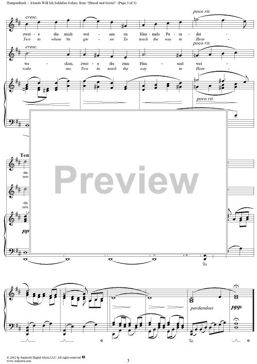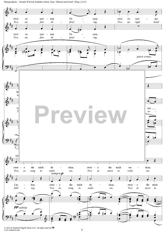 Digital Sheet Music for Abends Will Ich Schlafen Gehen - from "Hänsel und Gretel" by Engelbert Humperdinck, A. Wette, A. Pero scored for Voice/Piano; id:266143