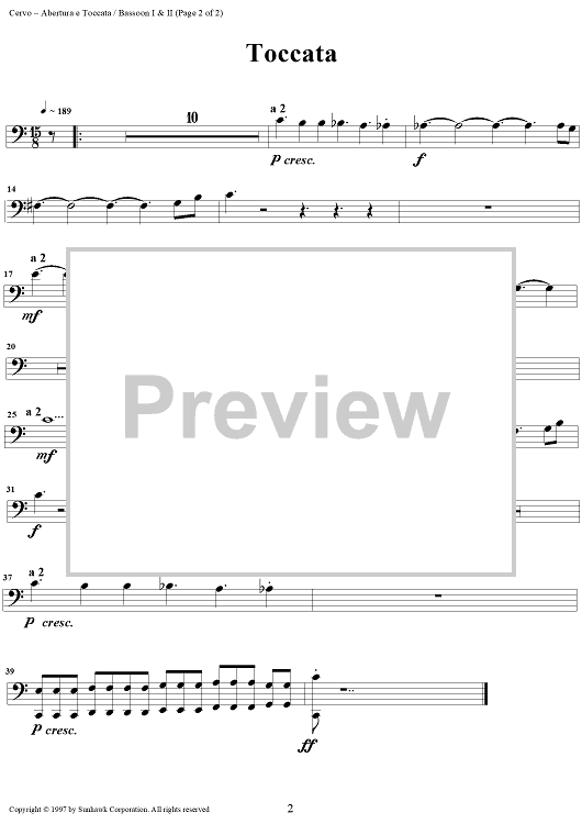 "Abertura e Toccata - Bassoon" Sheet Music by Dimitri Cervo