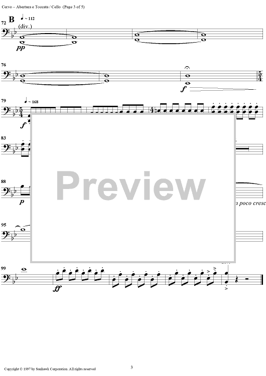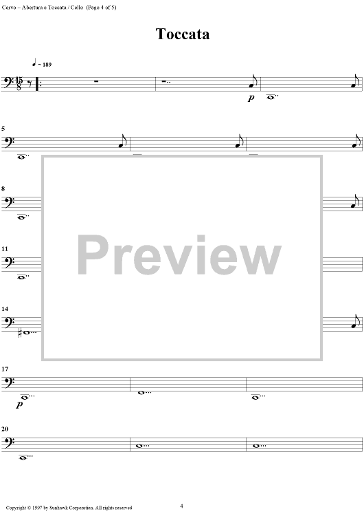 "Abertura e Toccata - Cello" Sheet Music by Dimitri Cervo
