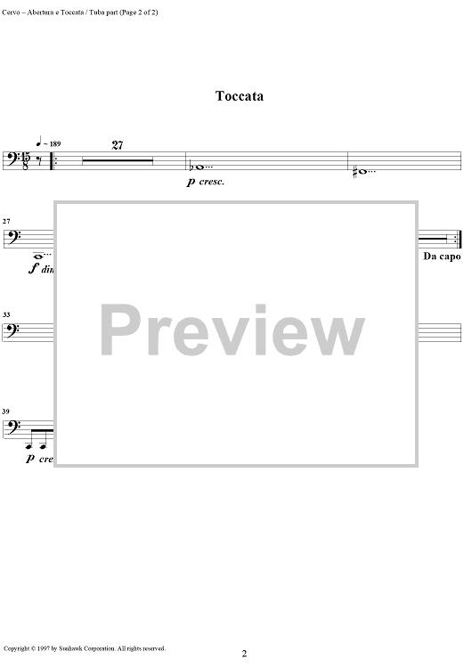 "Abertura e Toccata - Tuba" Sheet Music by Dimitri Cervo