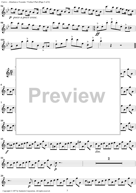 Digital Sheet Music for Abertura e Toccata - Violin 1 by Dimitri Cervo scored for Orchestra; id:94948