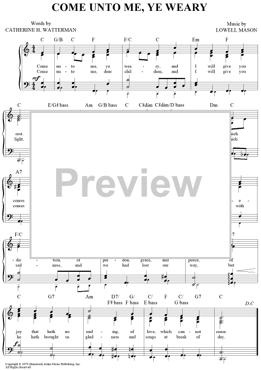 Digital Sheet Music for Abide With Me / Come Unto Me, Ye Weary by William Henry Monk, Lowell Mason, Henry Francis Lyte, Catherine H. Watterman scored for Easy Piano/Vocal/Chords; id:433089