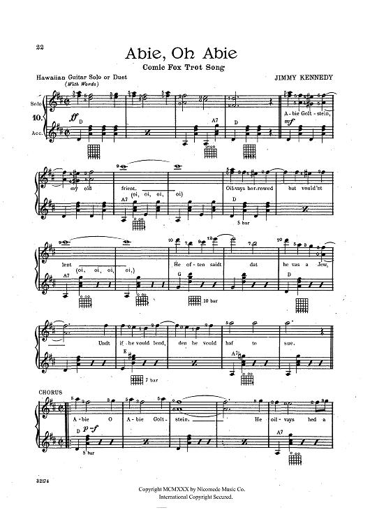 "Abie, Oh Abie" Sheet Music by Jimmy Kennedy