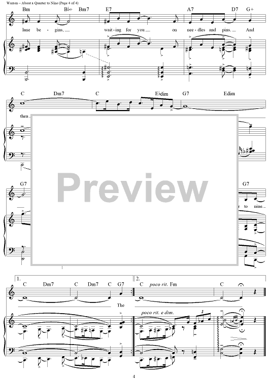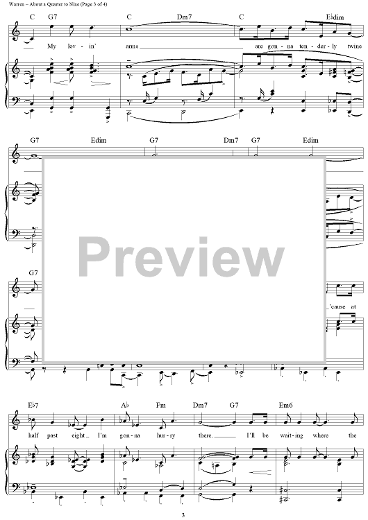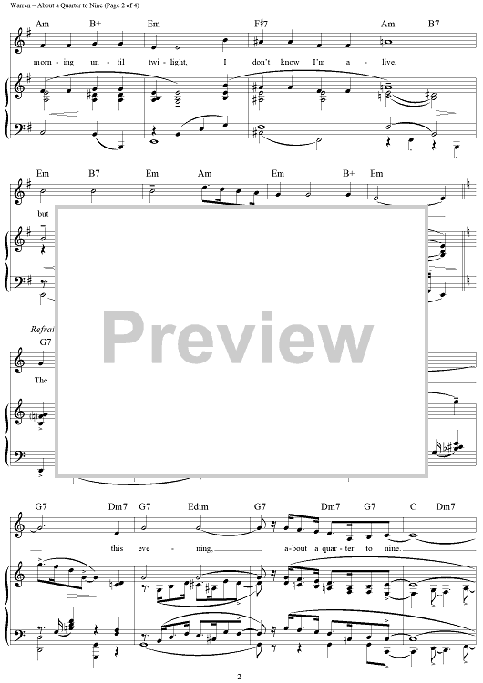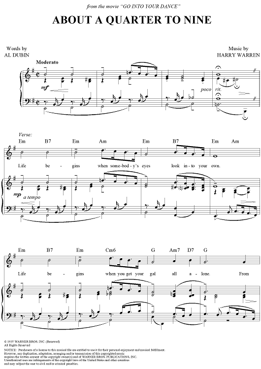 Digital Sheet Music for About a Quarter to Nine by Harry Warren, Al Dubin scored for Piano/Vocal/Chords; id:264776