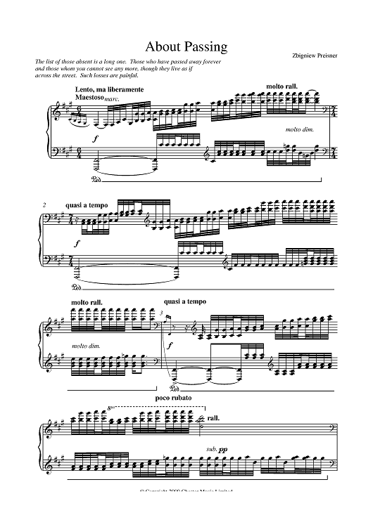 Digital Sheet Music for About Passing by Zbigniew Preisner scored for Piano; id:382549