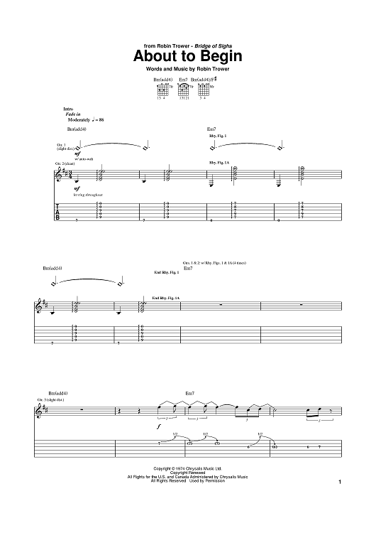 Digital Sheet Music for About To Begin by Robin Trower scored for Guitar Tab; id:375426
